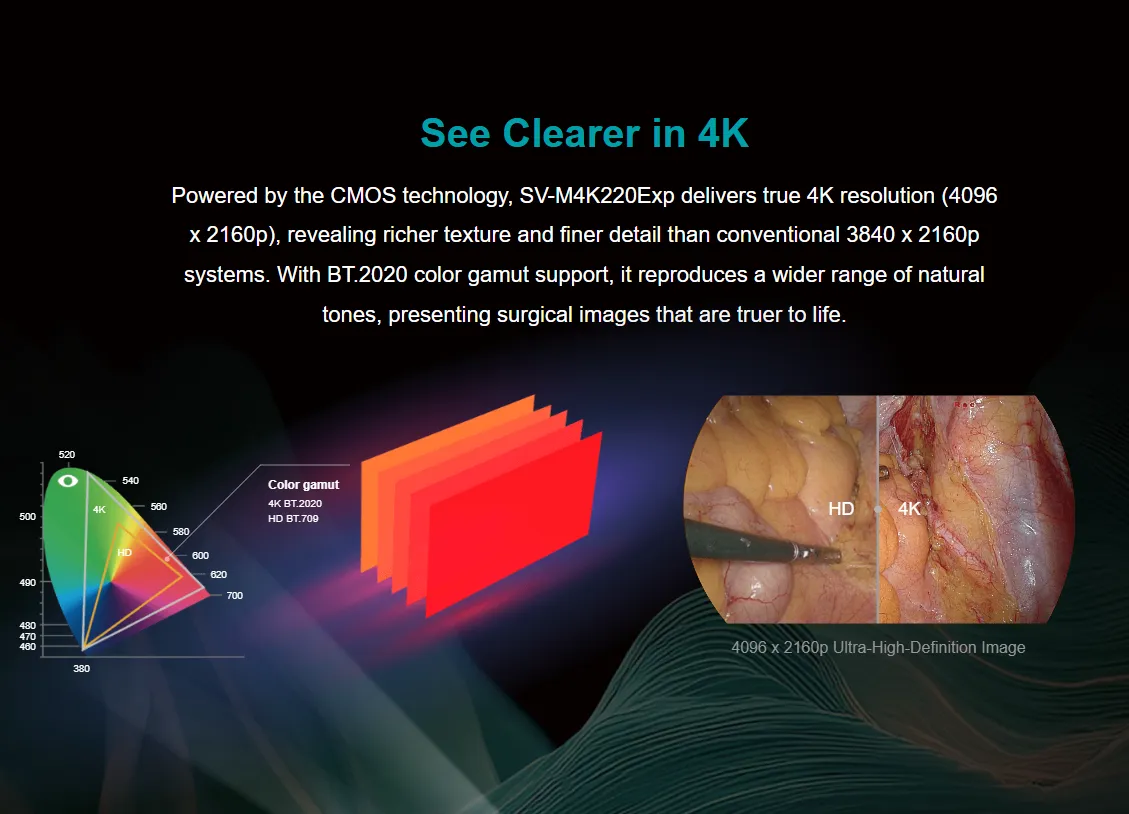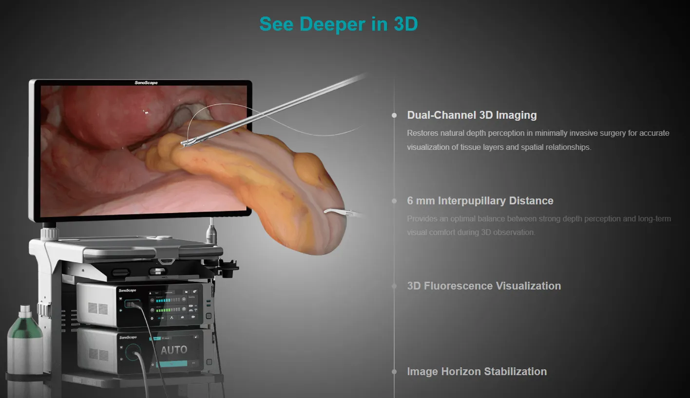 SonoScape SV-M4K220 : Système d’endoscopie 3D NIR 4K avancé. Améliore la précision chirurgicale grâce à la fluorescence en temps réel et à un flux de travail intelligent.