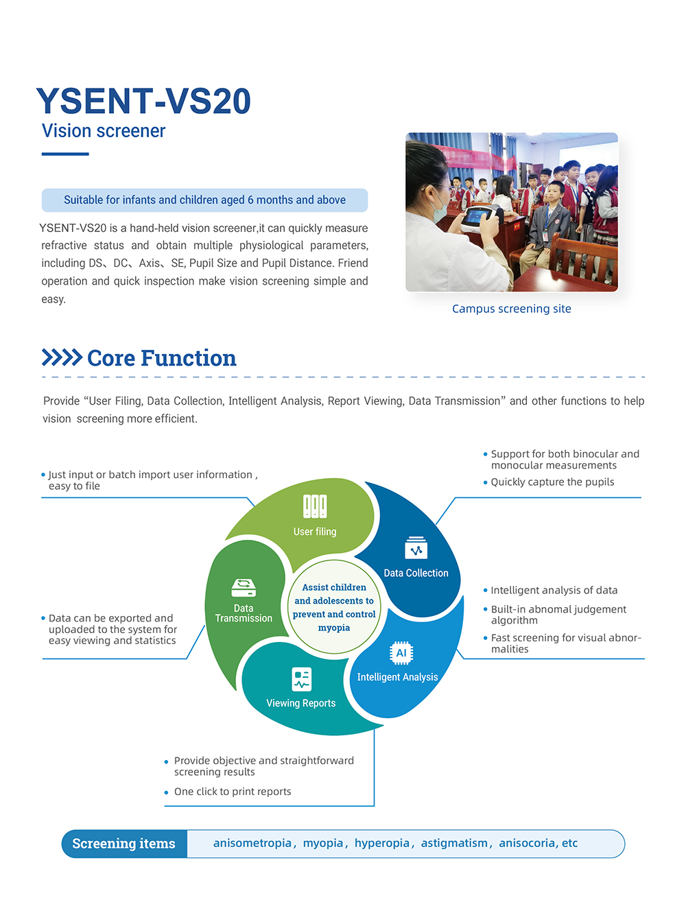 Le dépisteur visuel portatif YSENT-VS20 offre un dépistage oculaire rapide, sûr et sans dilatation pour les programmes de dépistage visuel pédiatriques et scolaires.