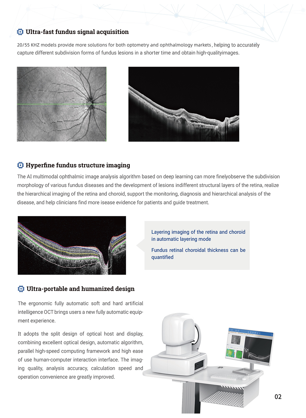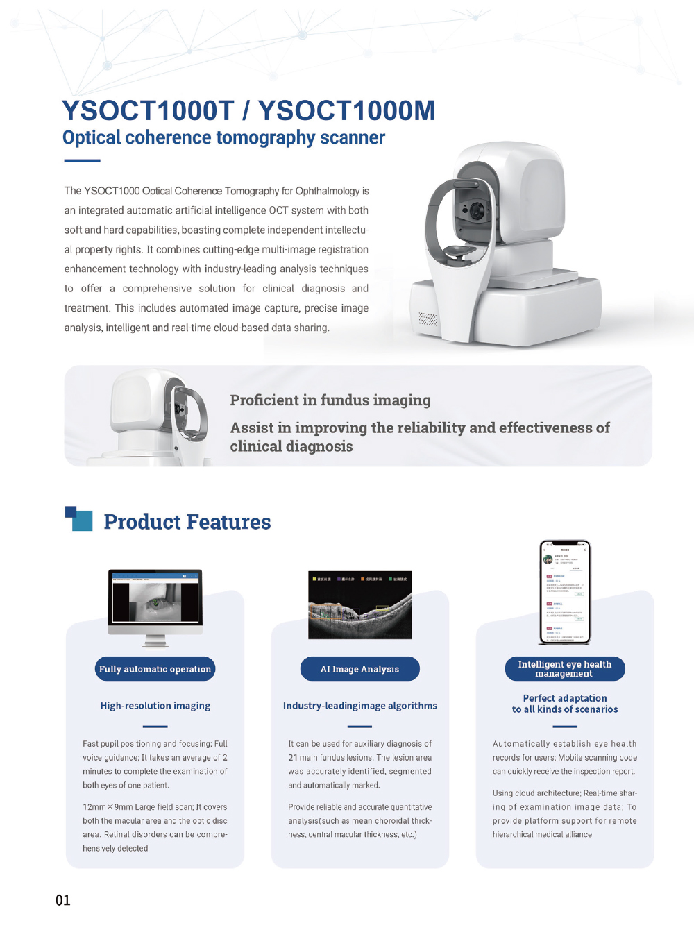 Le YSOCT1000T est un OCT ophtalmique entièrement automatisé basé sur l'IA, offrant une imagerie rapide et précise ainsi qu'une analyse intelligente pour les cliniques ophtalmologiques modernes.