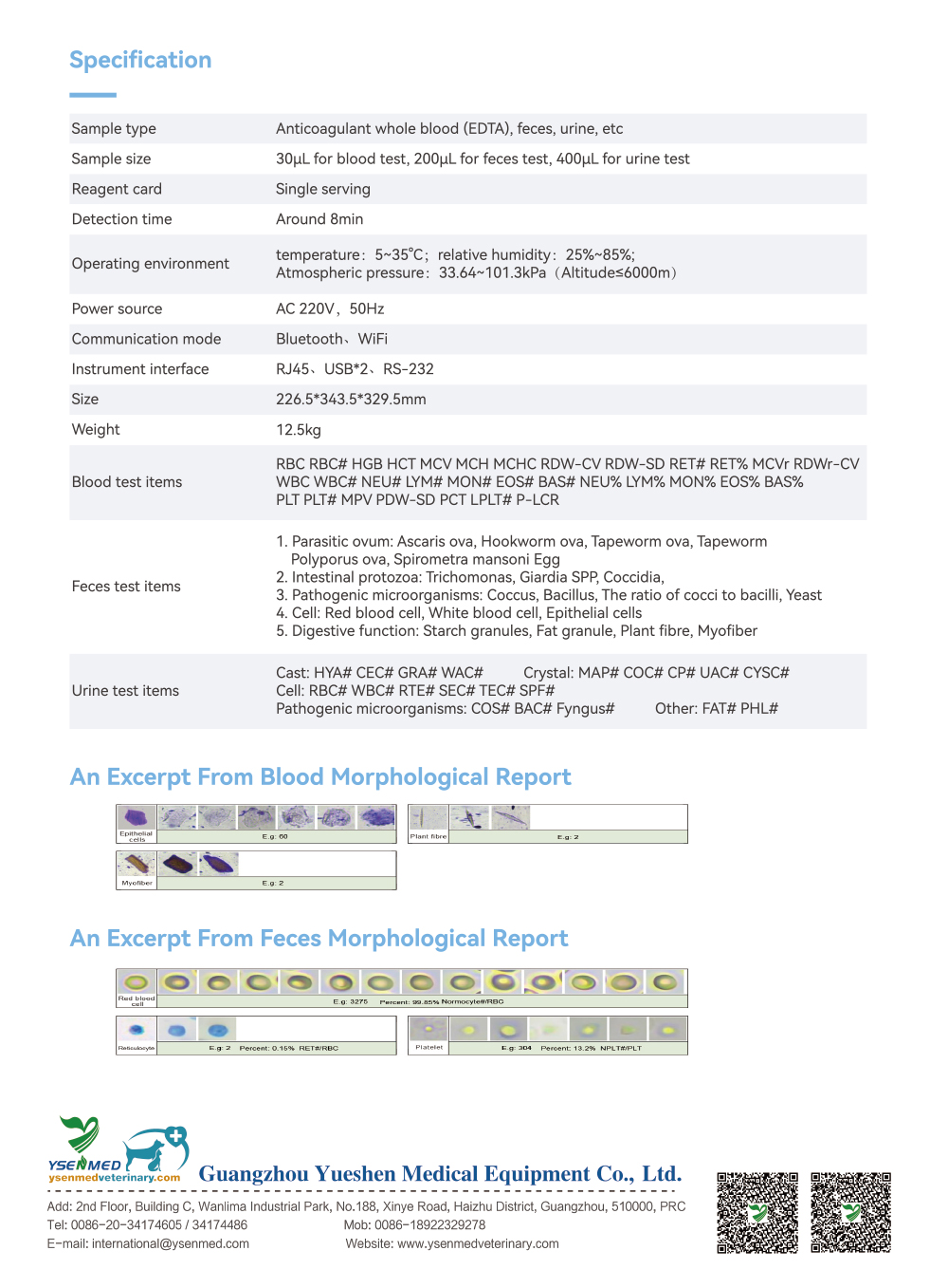 Articles de test de matières fécales | 1. Ovule parasitaire : Ovules d'Ascaris, Ovules d'ankylostome, Ovules de ténia, Ténia Ovules de Polyporus, Œuf de Spirometra mansoni 2. Protozoaires intestinaux : Trichomonas, Giardia SPP, Coccidies 3. Microorganismes pathogènes : Coccus, Bacillus, Rapport cocci/bacilles, Levure 4.Cellule : Globule rouge, Globule blanc. Cellules épithéliales 5. Fonction digestive : G ranules d'amidon, Granules de graisse, Fibres végétales, Myofibres |